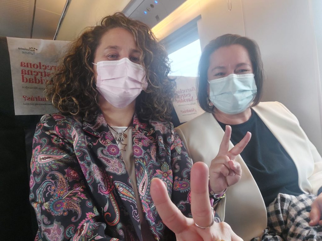 Siiiiii Teresa Perales, estuvimos con ella en la gala pero lo cierto es que no nos dio tiempo a hacernos la foto y… Tachan estaba en el asiento del Ave junto a nosotras, asi que aprovechamos para captar el momento y darle las gracias por todo su trabajo, su entrega, su forma de ser… en fin que la adoramos y se lo dijimos claro!!